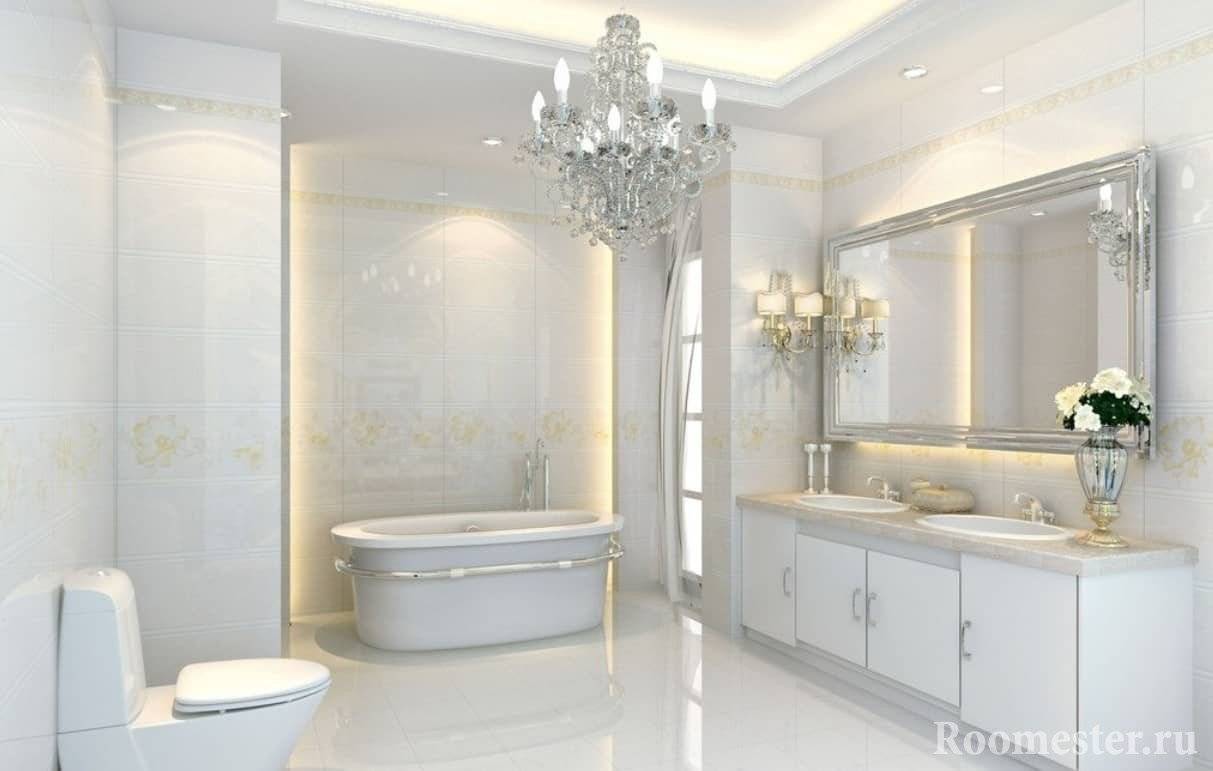 Дизайн ванной комнаты в белом цвете в стиле неоклассика