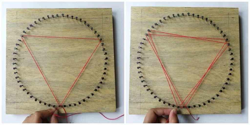 Прошло несколько столетий, и в середине XIX века полузабытый способ работы с нитью возродила математик Мэри Эверест Буль. Она нашла оригинальный способ демонстрации своим ученикам построения геометрических фигур. Для занятий она использовала небольшую доску с прибитыми гвоздями, на которой при помощи верёвки «рисовала» треугольники, квадраты и более сложные фигуры.