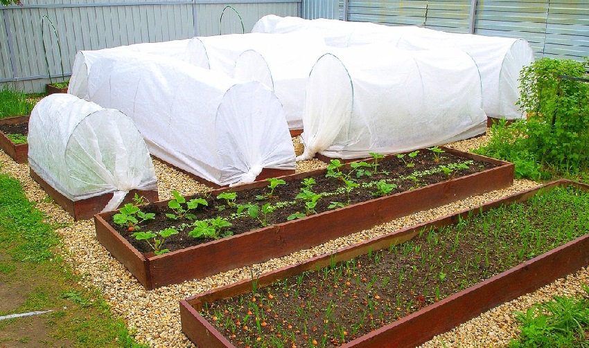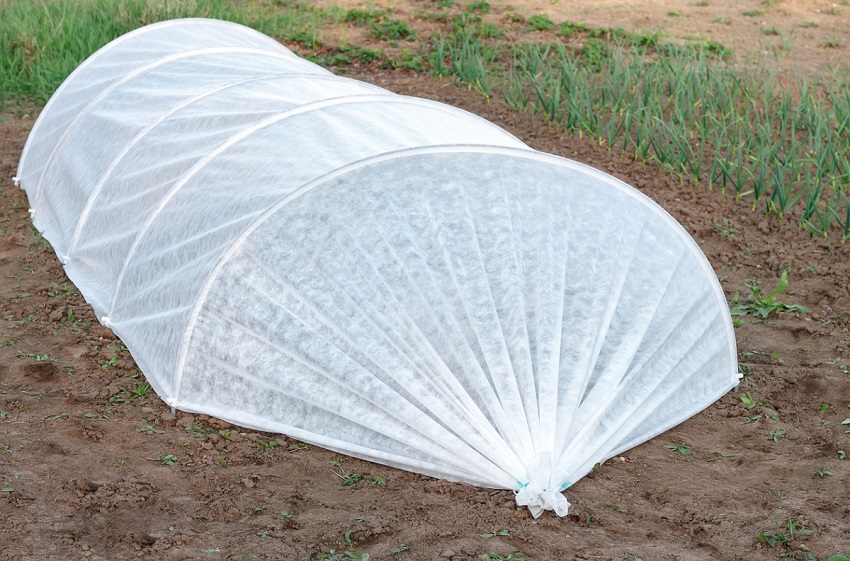 В качестве укрывного материала используется спанбонд плотностью 42 г/кв. м (официальное название – СУФ-42).
