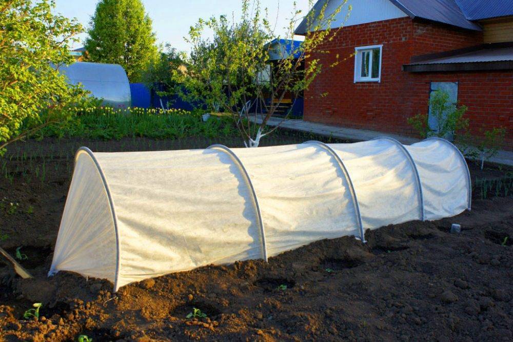 Спанбонд обладает доступной стоимостью и практичен в эксплуатации. Современный материал легко сочетается с пластиковыми или трубами ПНД. Поэтому сделать парник-«подснежник» можно быстро своими руками.