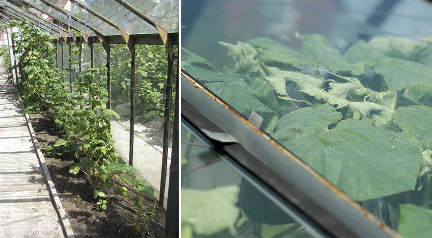 - При выращивании огурцов под старыми рамами стекла нужно побелить или покрасить белой краской, это убережет растения от ожогов.