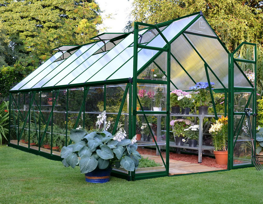 Конструкции из поликарбоната оснащаются 1 или 2 дверями, а также форточками для проветривания. В больших конструкциях можно выращивать различные культуры, отделяя их ширмами из пленки или других материалов.