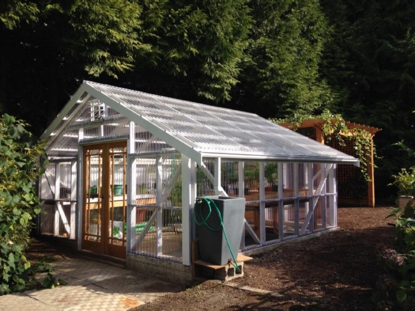 Теплица из поликарбоната, фото на даче конструкции «Двушка»