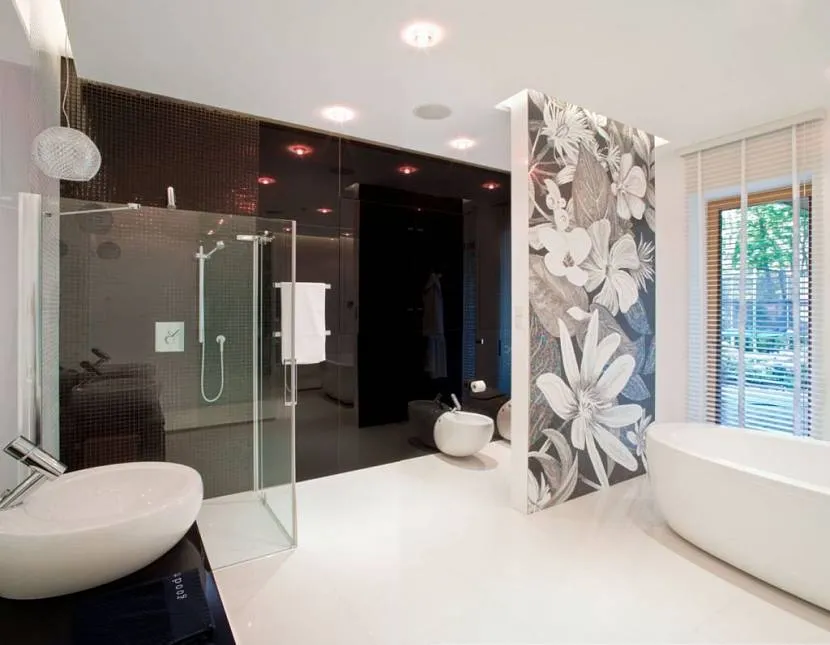 Дополнительными элементами декора при зонировании комнаты гипсокартоном являются встроенные в тело перегородки стеклоблоки, витражи, зеркала, ажурные или узорчатые простенки криволинейной конфигурации.