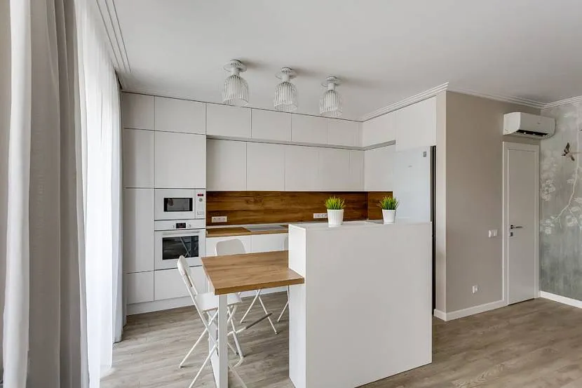 Совмещение кухни с жилыми помещениями – популярный и массово распространенный ход, поэтому с его реализацией не возникнет проблем.