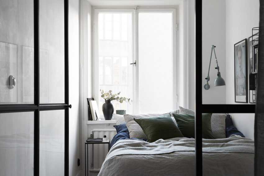 В большой квартире с несколькими окнами и высокими потолками из гипсокартона можно сделать фальш-стену, которая разделит помещения на гостинную и спальню.