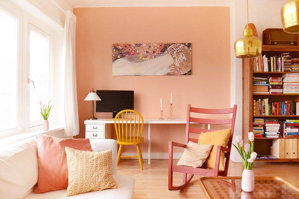 Чем насыщеннее персиковый цвет, тем теплее получается комната