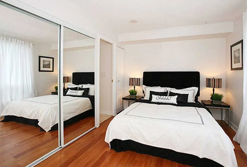 Шкаф-купе в маленькой спальне — не лучшее, но, зачастую, единственное решение в условиях дефицита полезной площади