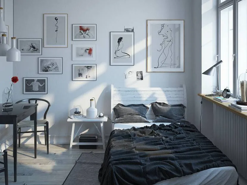 Если для вас важно сохранить как можно больше свободного пространства, продумайте альтернативу. Местом хранения могут стать ящики под кроватью или небольшие узкие комоды вместо прикроватных тумбочек