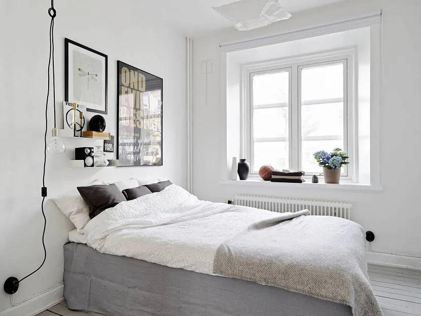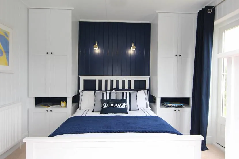 В спальне скромного размера поместится только самая необходимая мебель. О дополнительном шкафе или комоде, скорее всего, придется забыть.