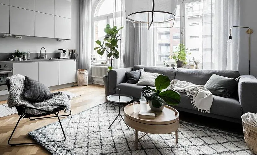 - В скандинавских композициях украсьте комнату растениями! Поставьте на стол вазу с сезонными цветами, а в углу гостиной поставьте большой горшок.