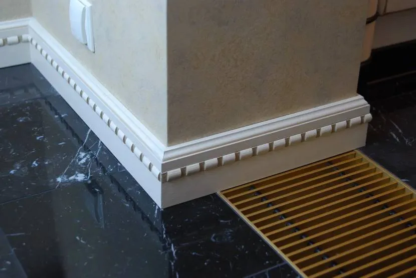 Окантовка пола должна гармонировать с напольным покрытием или стенами и даже сливаться с ними по цвету. Светлая окантовка делает помещение визуально шире, а темная, наоборот, сужает и уменьшает.