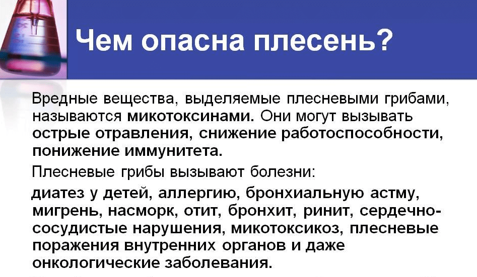 Микотоксин — опасная спора, при попадании в организм человека, приносит большой вред здоровью: сердцу, легким, а также репродуктивной системе.