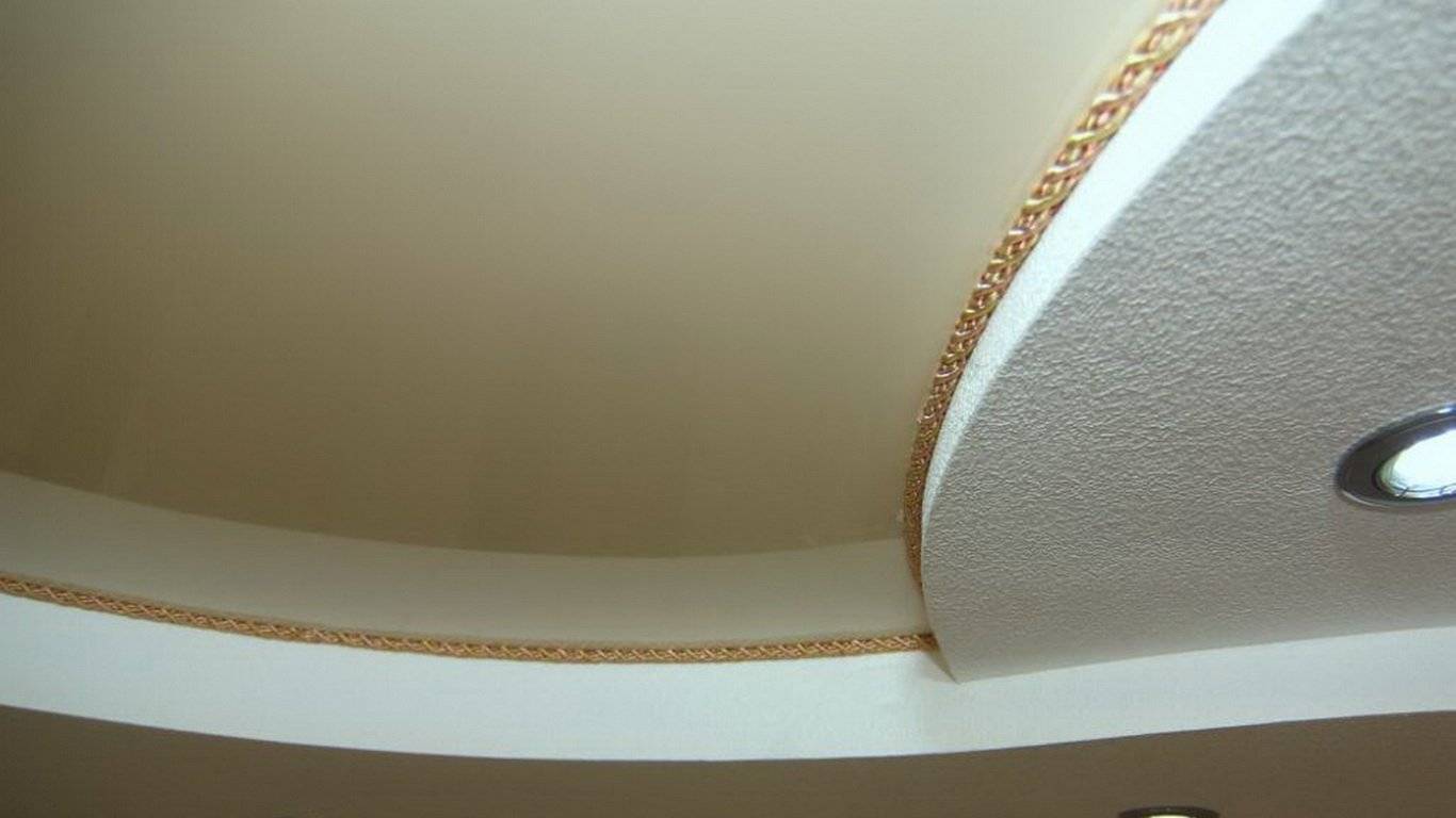 Еще один способ заделать щель – закрыть ее декоративным шнуром, сплетенным из нитей – однотонных, соседних или контрастных. Часто вплетают металлизированные нити – золотые, серебряные. Такой шнур отлично смотрится в сочетании с матовыми, замшевыми или сатиновыми полотнами. Это отличный способ декорирования для таких комнат, как гостиная, спальня, прихожая, столовая или кабинет.