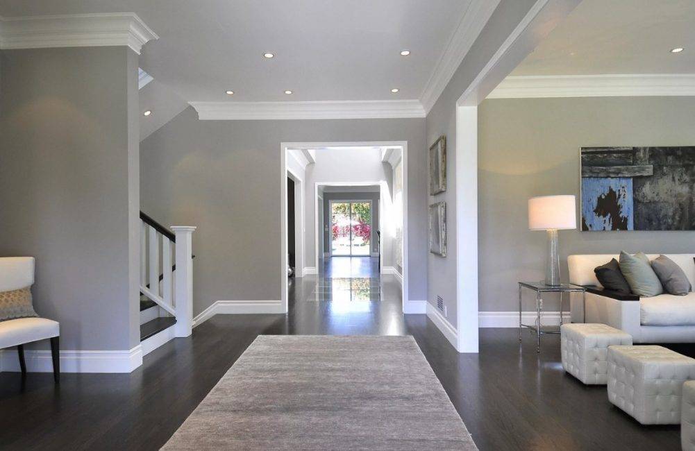 Потолочные плинтуса должны сочетаться по цвету с одним из тонов, присутствующих в дизайне комнаты. Их можно комбинировать с цветом мебели, пола, потолка, но при этом соблюдать правила: