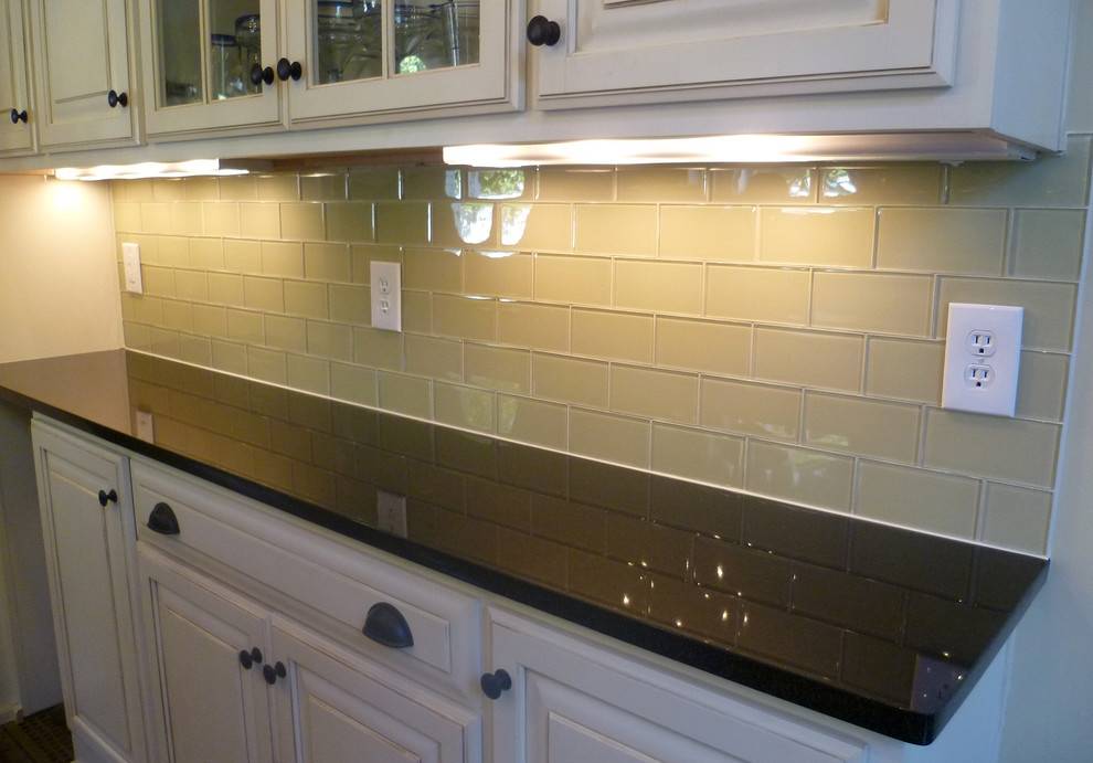Вот пример оформления фартука из плитки на кухне – стекло смотрится очень красиво и стильно.