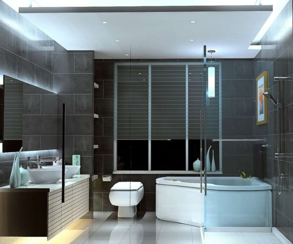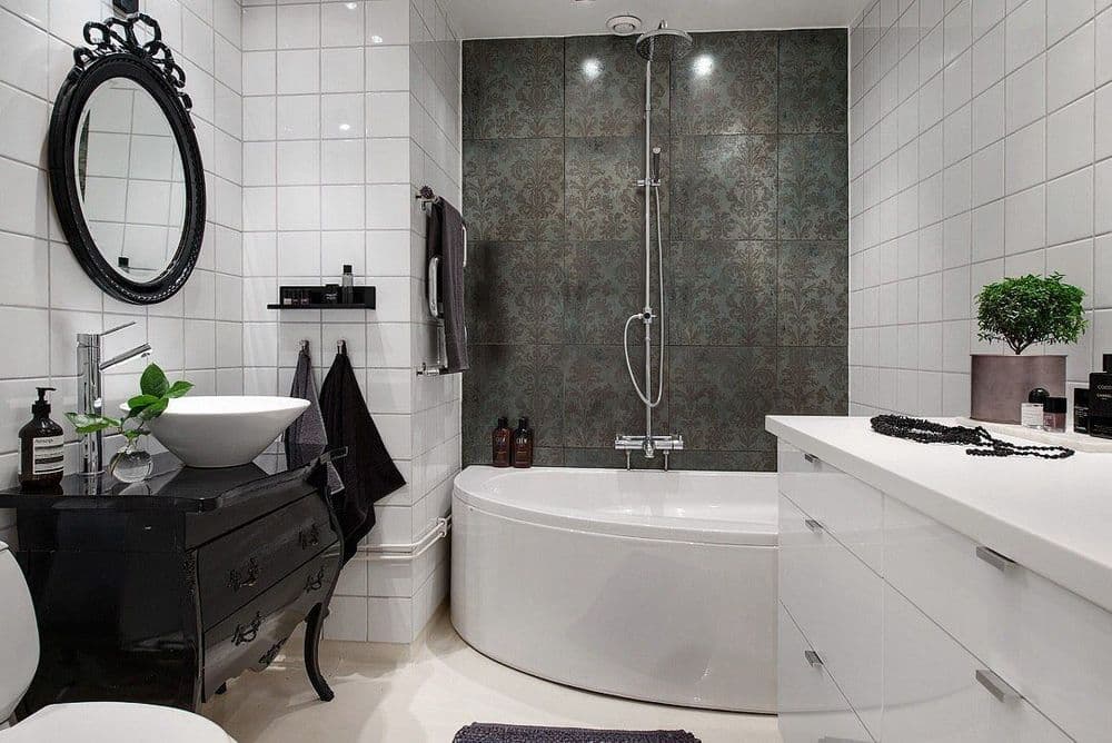 Дизайн ванной комнаты с угловой моделью всегда выглядит оригинально. Рассмотрим, с какими стилями сочетается это решение.