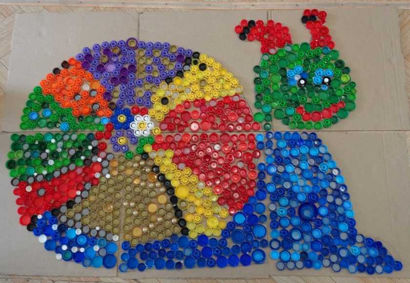 Мозаики и игрушки из крышек пластиковых бутылок — неплохой способ развлечь детей