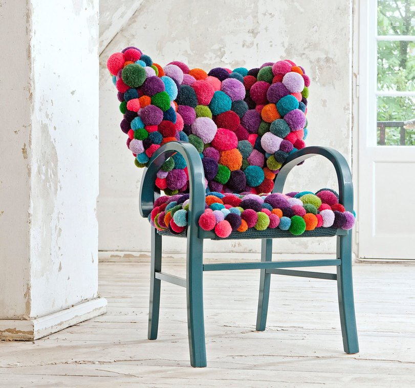 - Обивка мебели. Если джинсов насобиралось много, из них можно сделать полотнище и обить кресло и даже диван.