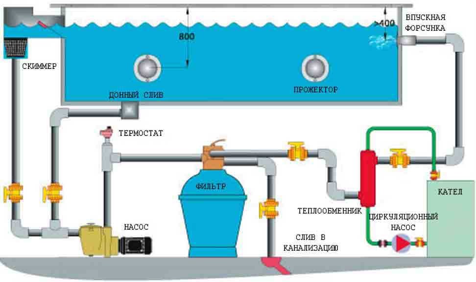 Найти точную инструкцию очень сложно, но ведь как-то надо нагревать воду бассейна. Существует несколько популярных вариантов, чтобы нагреть содержимое в бассейне. Первый – это обогрев бассейна теплообменником. Для этого потребуется: