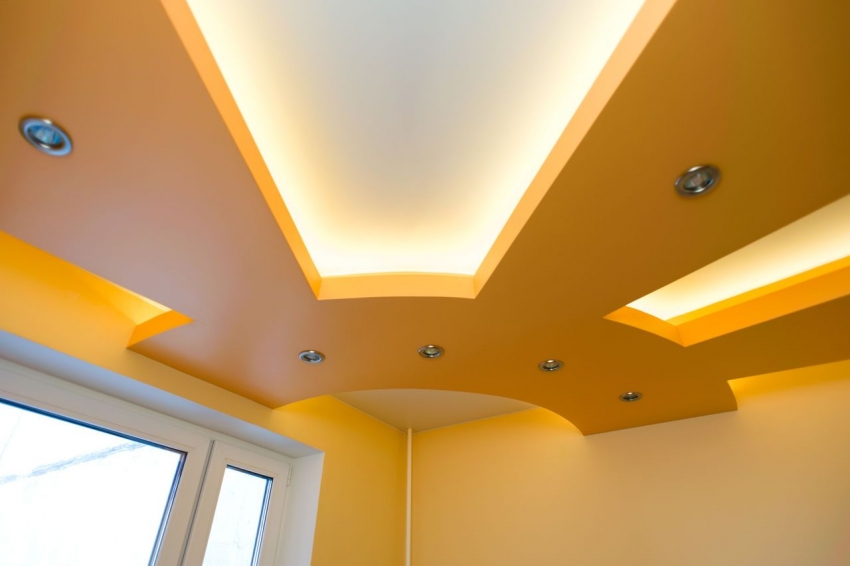Выбор конструкции в немалой степени определяется высотой базового потолка. Нужно помнить, что каждый уровень отнимает не менее 10 см, если сооружается каркас. При монтаже подсветки может понадобиться и больше пространства.