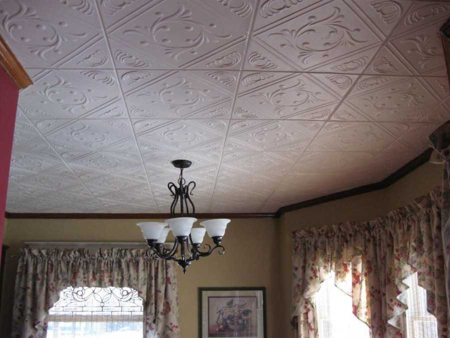 Подготовка поверхности к оклеиванию ничем не отличается от подготовки при другой отделке:она должна быть: ровной и чистой. В самом процессе самым сложным является просчитать количество плиток на площадь потолка.