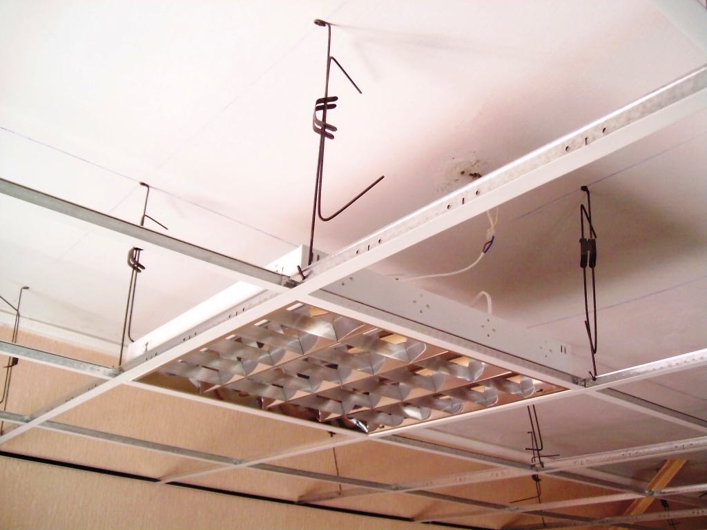 - Наличие запотолочного пространства для укладки различных коммуникаций. Это может быть вентиляционная система, электропроводка, компьютерные и телевизионные кабели. Так как систему можно быстро разобрать в любом месте, проблем с обслуживанием коммуникаций не будет.
