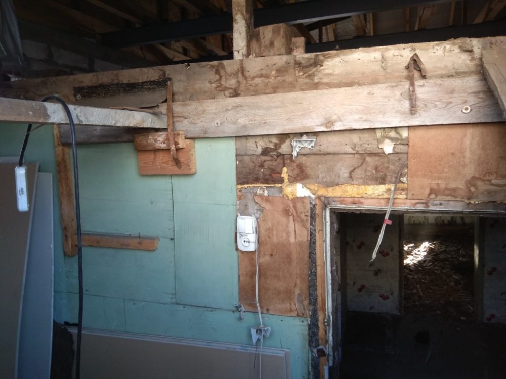 Ранее в этой части, был старый дом, во круг которого залили фундамент, и сначала, построив стены крышу — заселились в новую часть дома, а в части, где был старый дом, он так и остался зимовать. Представляете? Дом в доме ))