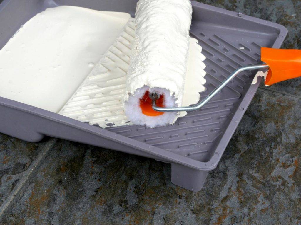 Совет!Каждый окрашенный участок следует еще раз «прокатать» полусухим валиком (не обмакивая его в краску), чтобы убрать с поверхности излишки краски.