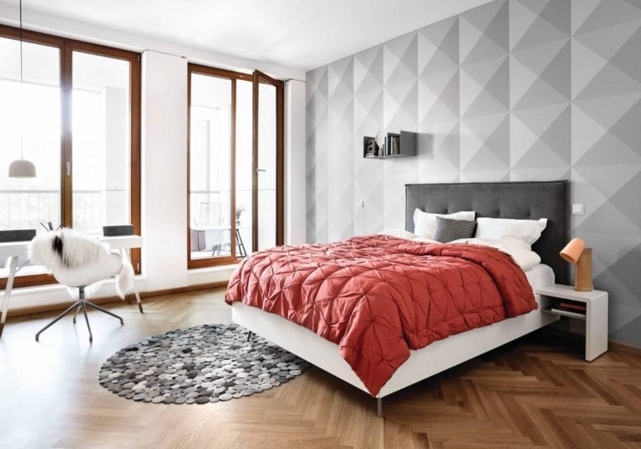 Такой эффект следует принимать во внимание при планировании дизайна помещения. В маленькой спальне с широкой кроватью подобный текстиль может чрезмерно увеличивать спальное место, уменьшая свободное пространство