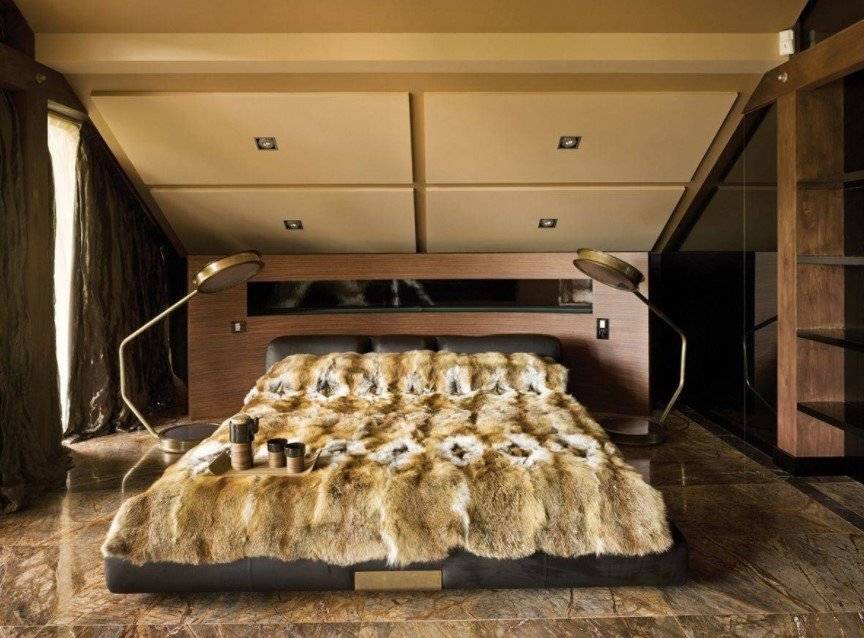 - В этническом интерьере, кантри используются лоскутные яркие полотна. Покрывало, имитирующее шкуру животного, может стать главным акцентом декора. В современном изделии может использоваться комбинация натурального и искусственного меха, кожи, текстиля.