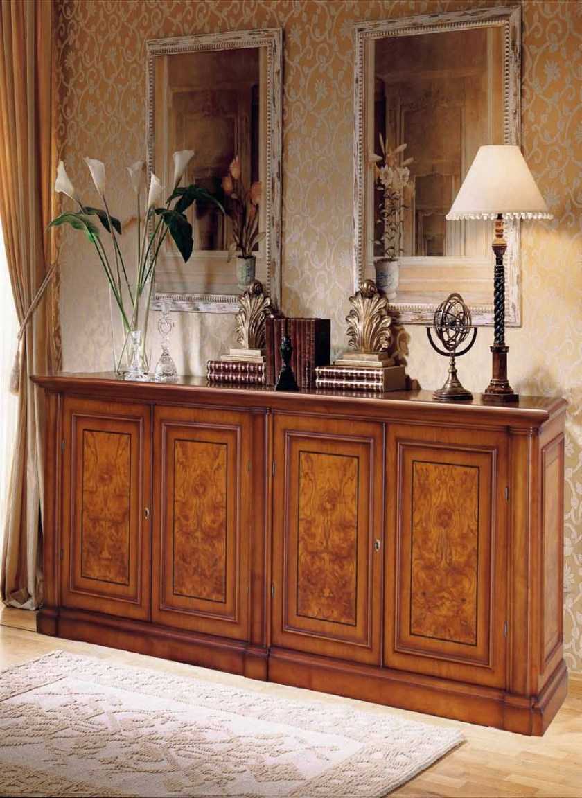 Длинные разновидности комодов многофункциональны, вместительны, имеют внушительные размеры. Здесь можно выделить место для хранения вещей, посуды и столовых принадлежностей. На сплошной столешнице можно установить различную аудио и видео аппаратуру.