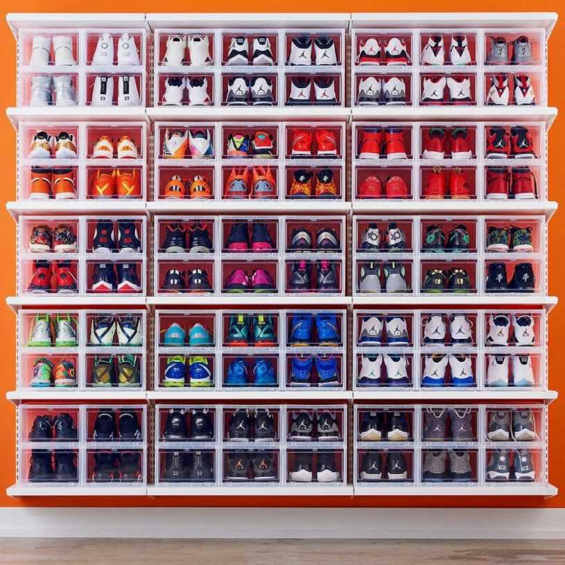 Длинные ряды устанавливаются по всей площади стены. В частных домах часто обустраивают дополнительные полки под лестницами или на чердаке.
