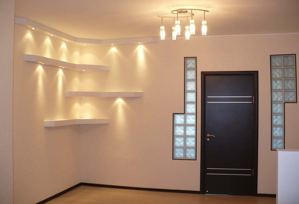 Если полочка будет с подсветкой, то проводится расчет и закупка электропроводки, светильников и выключателей.