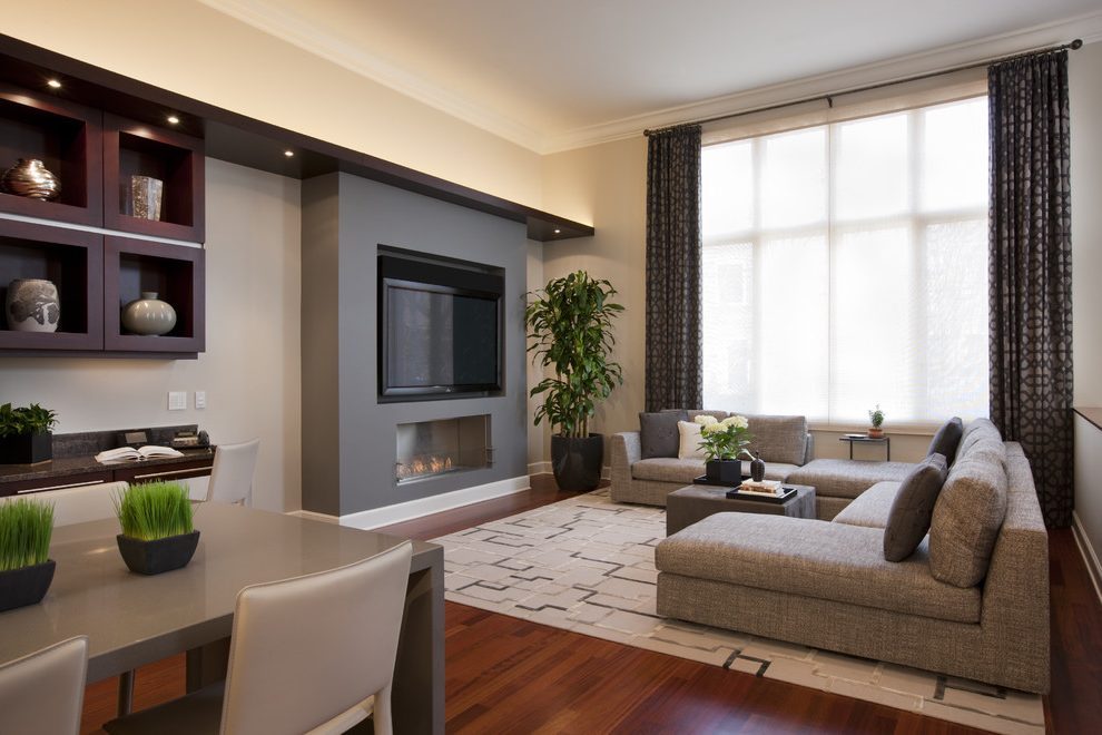 Зачастую гостиная – это проходная комната, поэтому требуется использовать фантазию и определенные навыки, чтобы вписать мебель в доступное пространство и удовлетворить эстетические вкусы. Изначально нужно определиться со способом размещения. Навесные шкафы бывают: