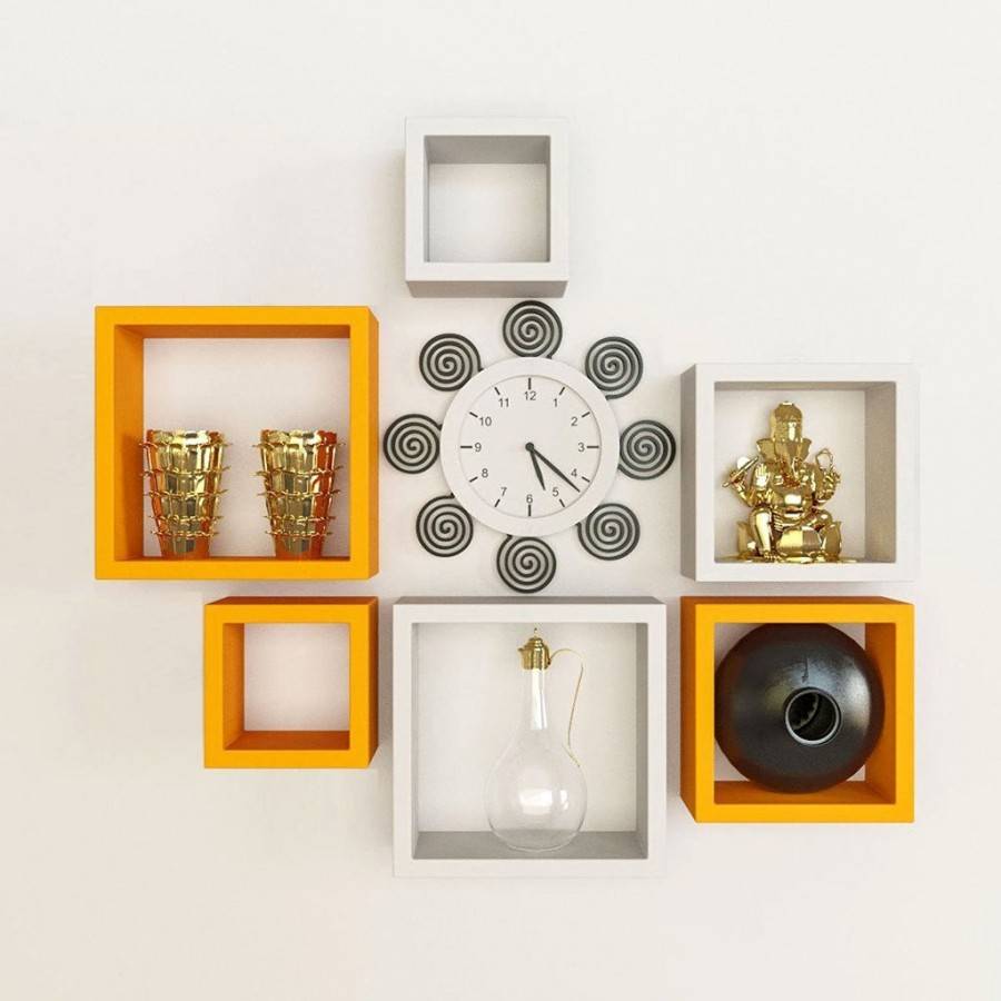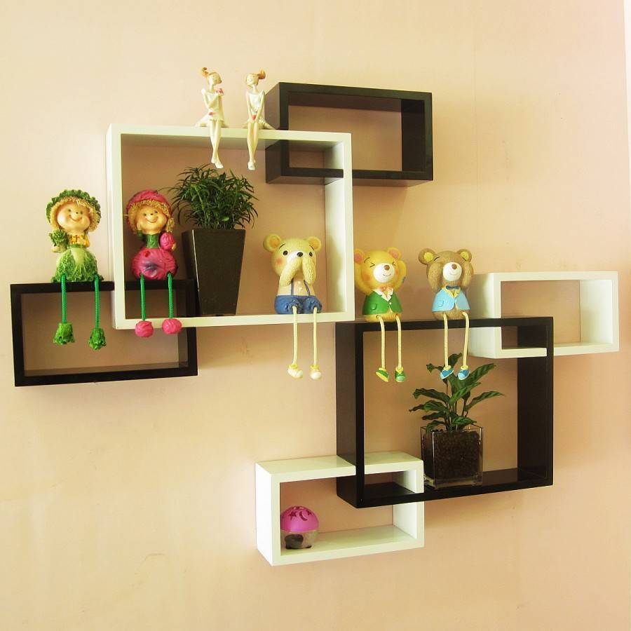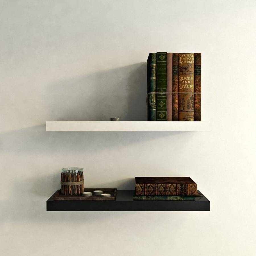 Так, например, если ваши модели выполнены в оригинальной форме и ярком цвете, что приковывает внимание, то все остальные элементы в помещении должны быть более сдержанными. И соответственно, наоборот, для стильного и яркого интерьера, полки подбираются спокойных тонов и форм