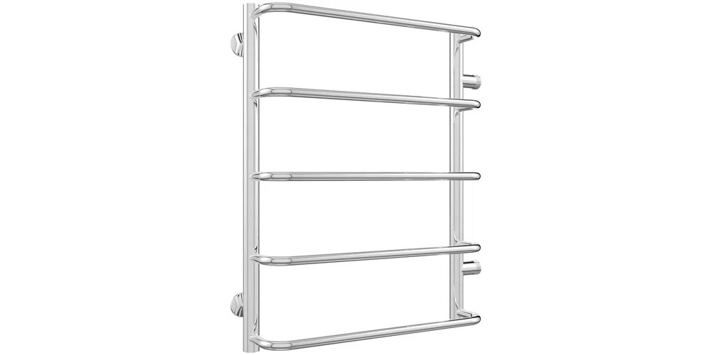 Модель в форме лесенки: 5 изогнутых горизонтальных труб, соединённых вертикальными трубками. Размеры — 69,6×57,7 см. Толщина стенок (2 мм) обеспечивает надёжность конструкции. Подключение аналогичное. Теплоотдача выше – 222 Вт. В комплекте — кран Маевского, заглушка, два телескопических крепления.