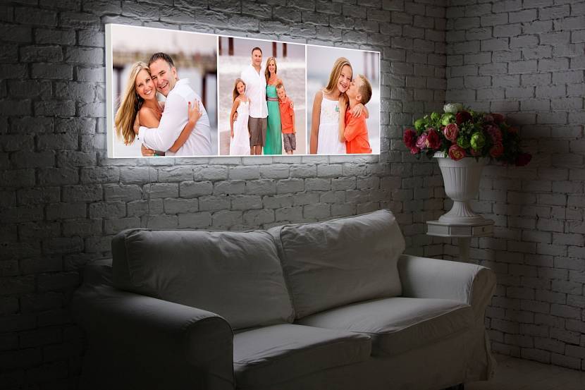 Выбирая размер постера, учитываются не только параметры изображения, но и количество размещаемых на стенах помещения печатных элементов. Можно сделать одно большое панно или коллаж из маленьких картинок. Оригинально смотрится галерея семейных портретов.