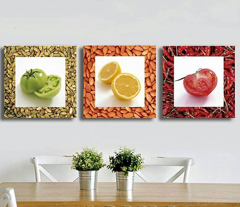 На этой территории нужны рисунки, которые не имеют сложного замысла. Потому что функционал комнаты отвечает за приготовление пищи, а также за ее поглощение. Поэтому от процесса не должно ничего отвлекать, а тем более заставлять задуматься.