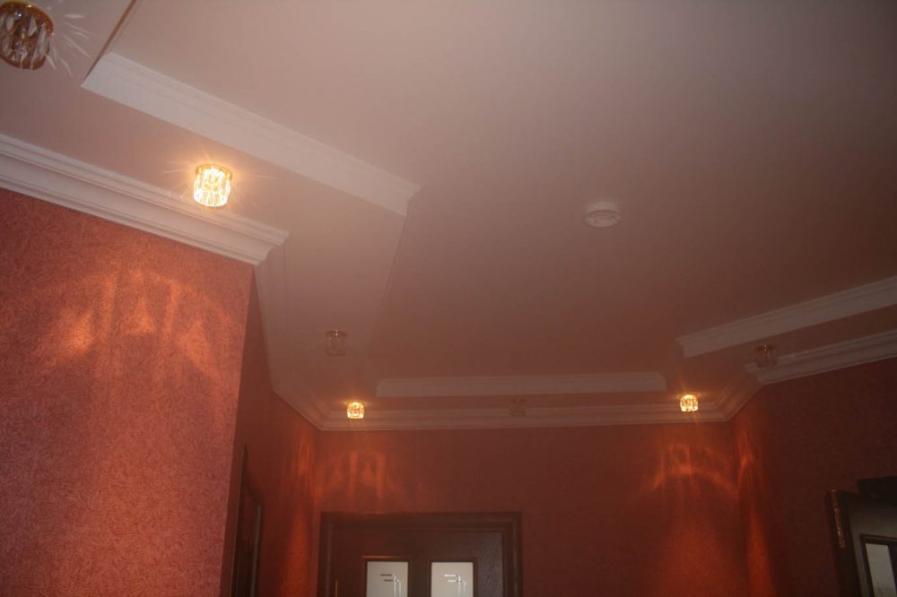 На таком потолке багеты смотрятся особенно красиво. Кроме того они позволяют скрыть переходы между уровнями.