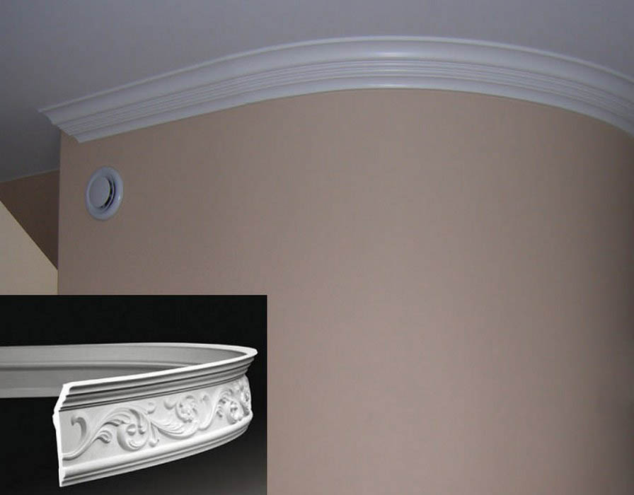 Радиусные галтели прекрасно подойдут для закругленного потолка. Такие эластичные модели с легкостью позволят декорировать полукруглые углы без лишних проблем.