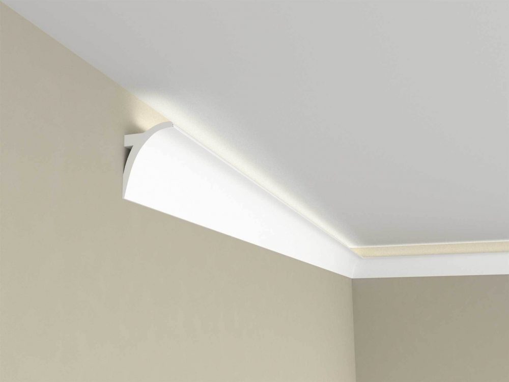 При необходимости изменить пропорции помещения, например, визуально увеличить потолок, лучше выбрать варианты белых потолочных плинтусов. Если к ним добавить светодиодную подсветку – это будет идеальный вариант.