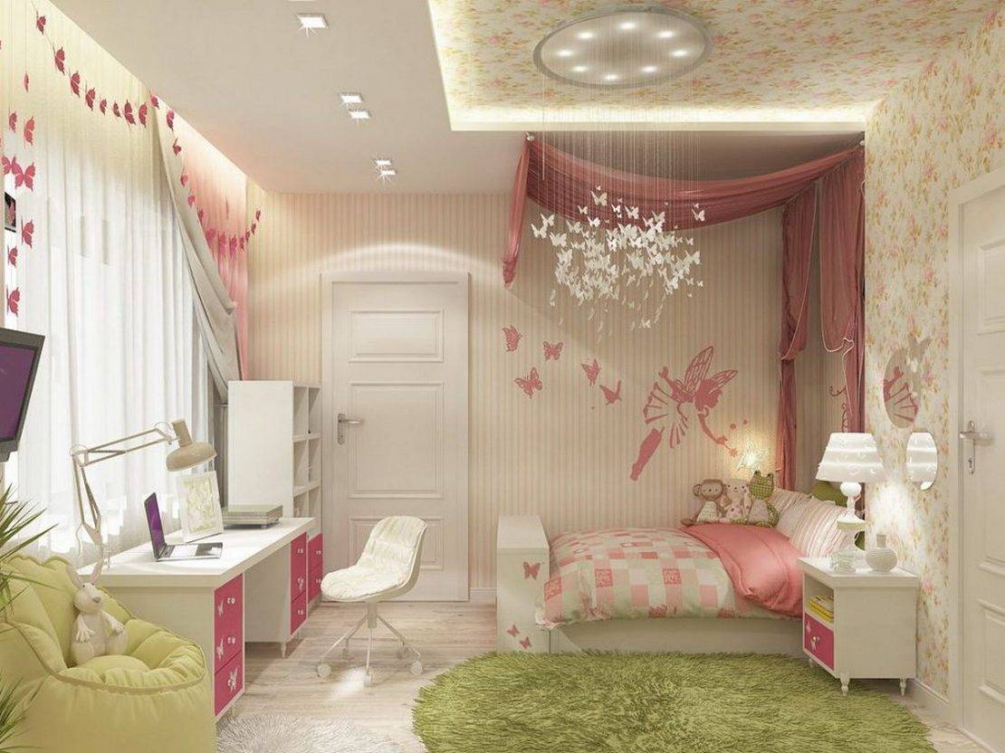 - потолок спальной комнаты для ребенка или подростка, также желательно делать в один уровень, не усложняя конструкцию визуально;