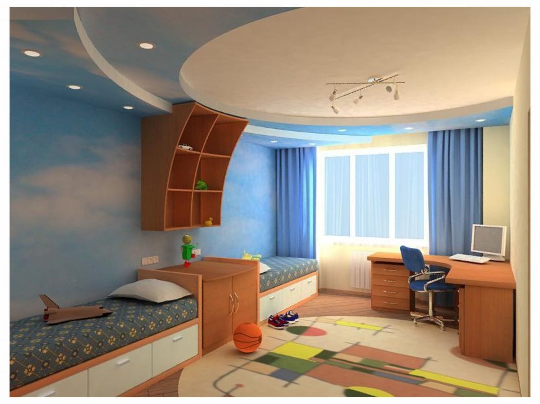 Варианты дизайна потолка из листов ГКЛ в детской комнате