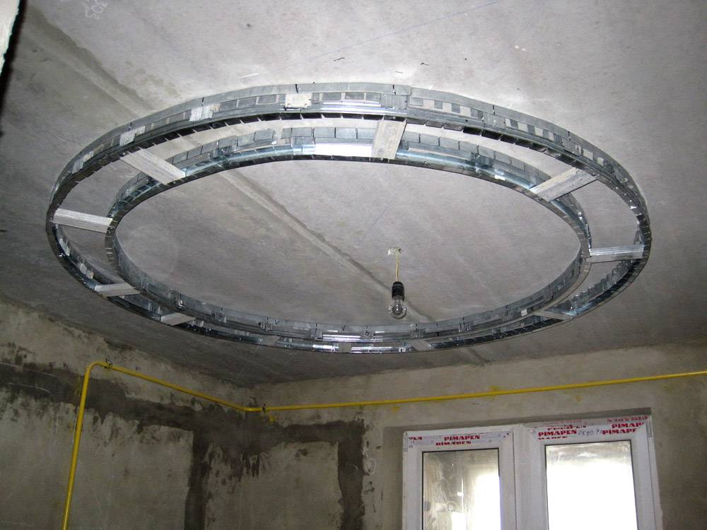 Если верх из гипсокартона рассчитан на монтаж своими руками двух и более уровней, опытные мастера применяют метод поперечного каркаса.