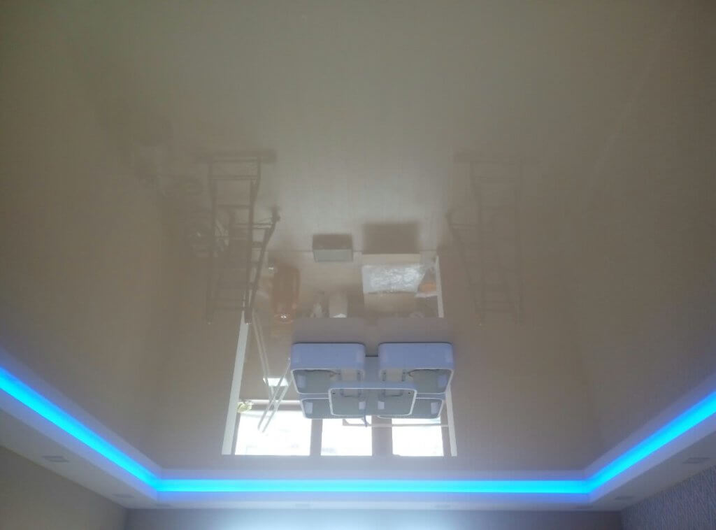 Специализированные фирмы изготовят дизайнерскую конструкцию натяжного потолка с подсветкой любой сложности. При этом монтаж занимает немного времени, а также не требует дополнительной отделки.