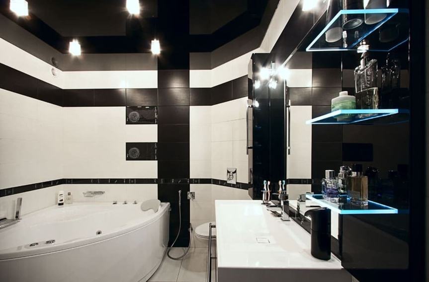 Дизайнерский зеркальный потолок в ванной комнате