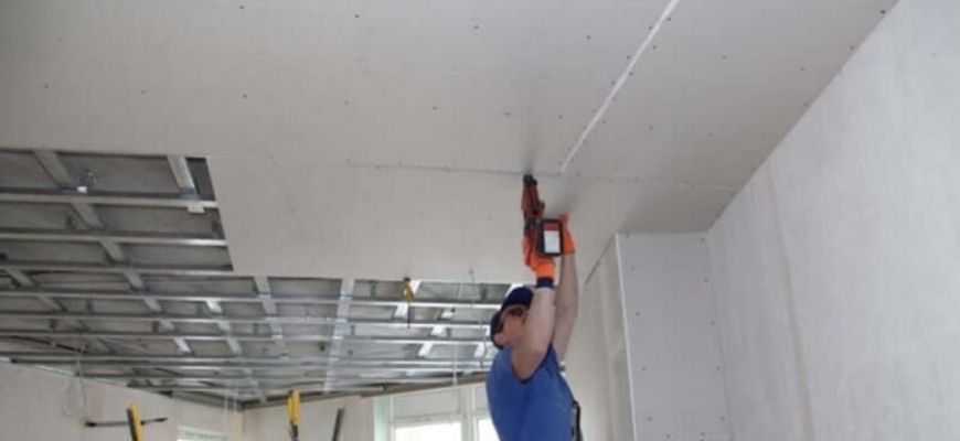 Если потолок в душевой сложно выровнять шпаклёвкой и штукатуркой, лучше докупить листы гипсокартона.