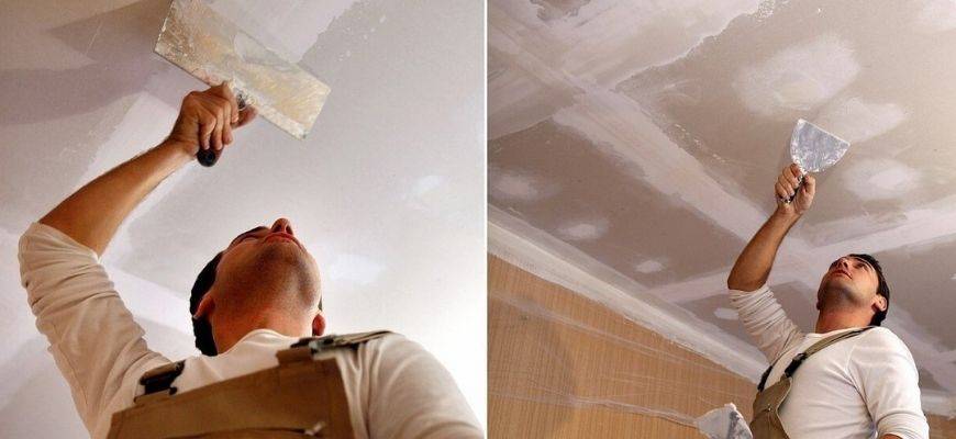 Мелкие шероховатости можно сгладить шпаклёвкой. Заметные неровности, перед тем как обновлять потолок в ванной комнате, маскируют штукатуркой или гипсокартоном.