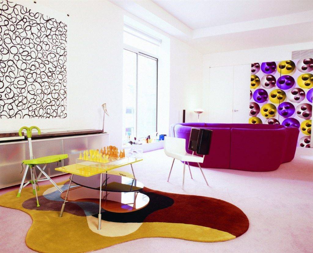 В настоящее время дизайнерами активно применяются популярные в 80-х годах фотообои. С их помощью делается акцент на определённой зоне интерьера. Например, над диваном или обеденным столом.